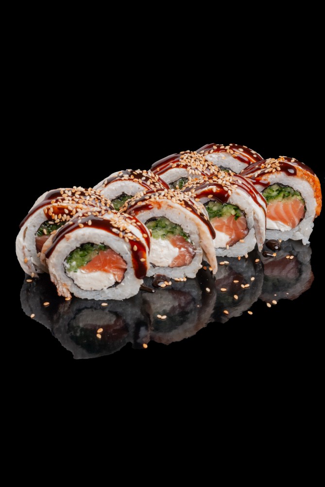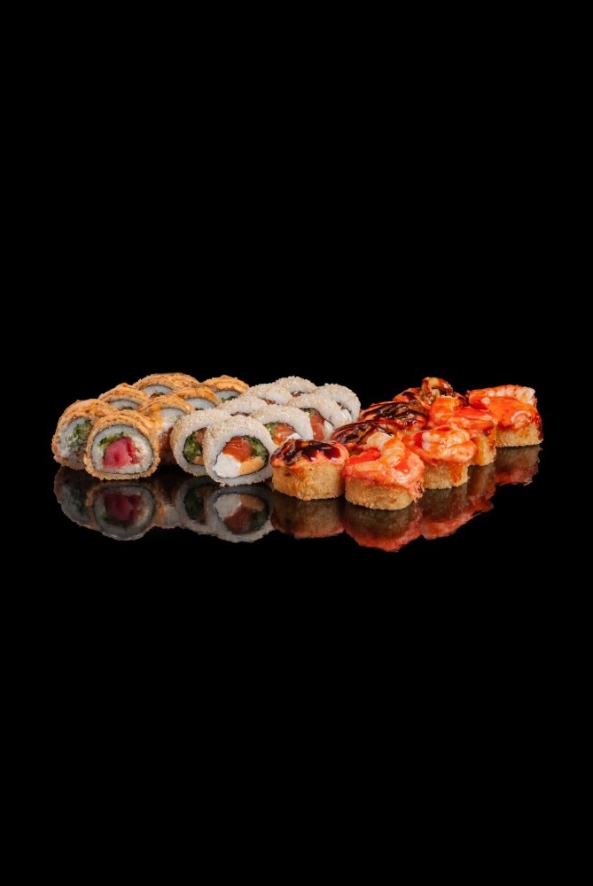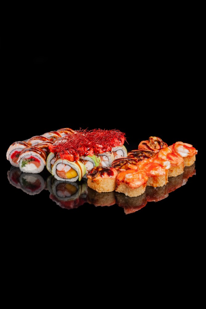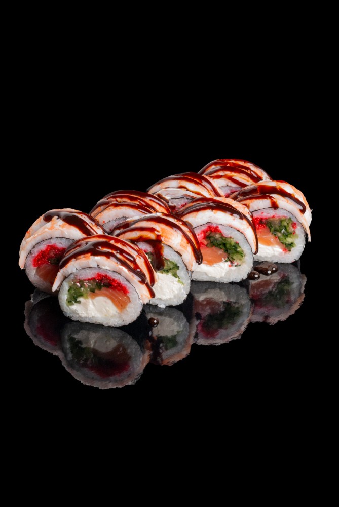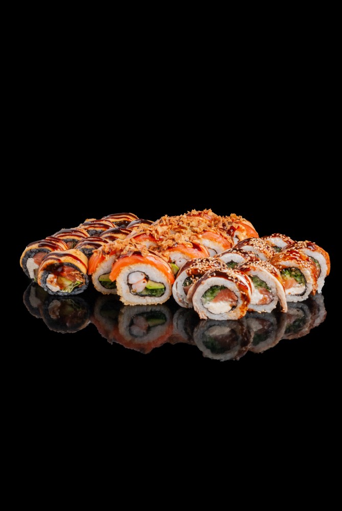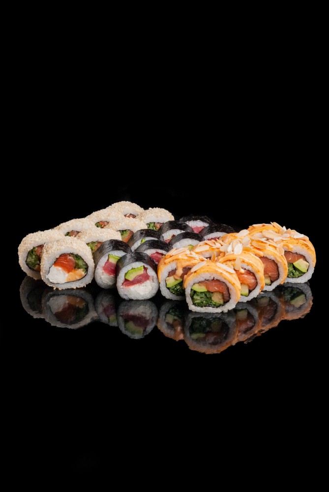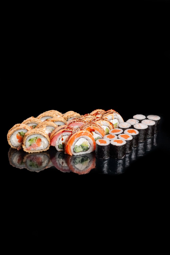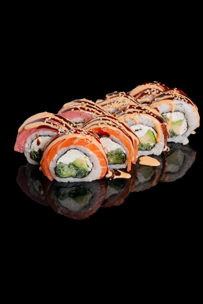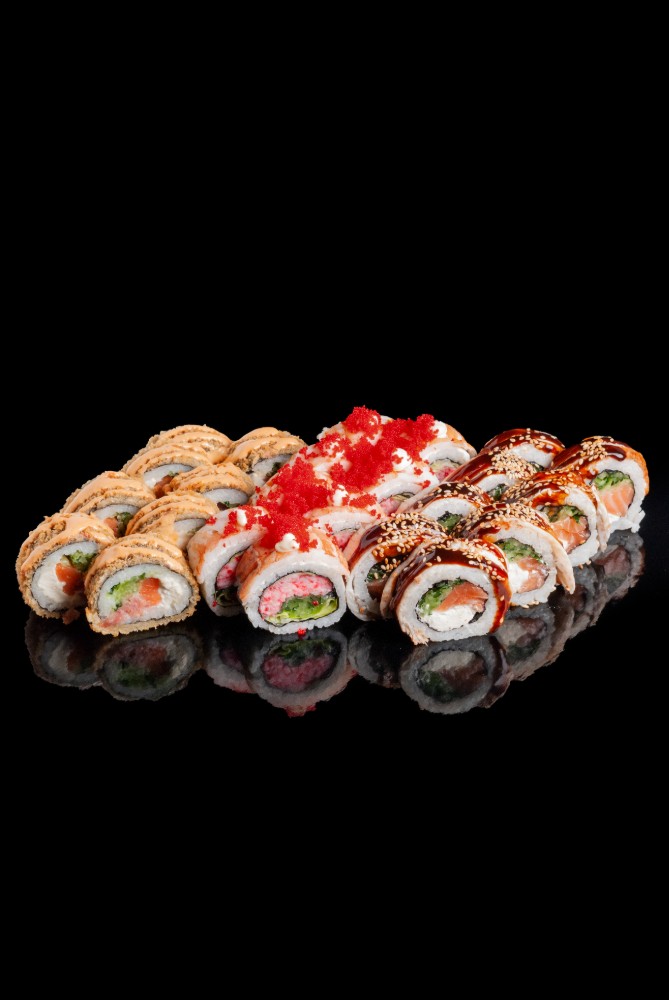 Токайдо :Рис,сир,норі,лосось,тунець,авокадо,огірок,червона ікра1060гр